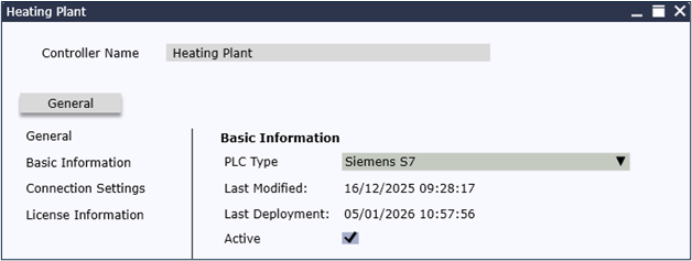 The connection is set up in the Project Controller’s properties, replacing a 3rd party OPC Server with an easy connection.